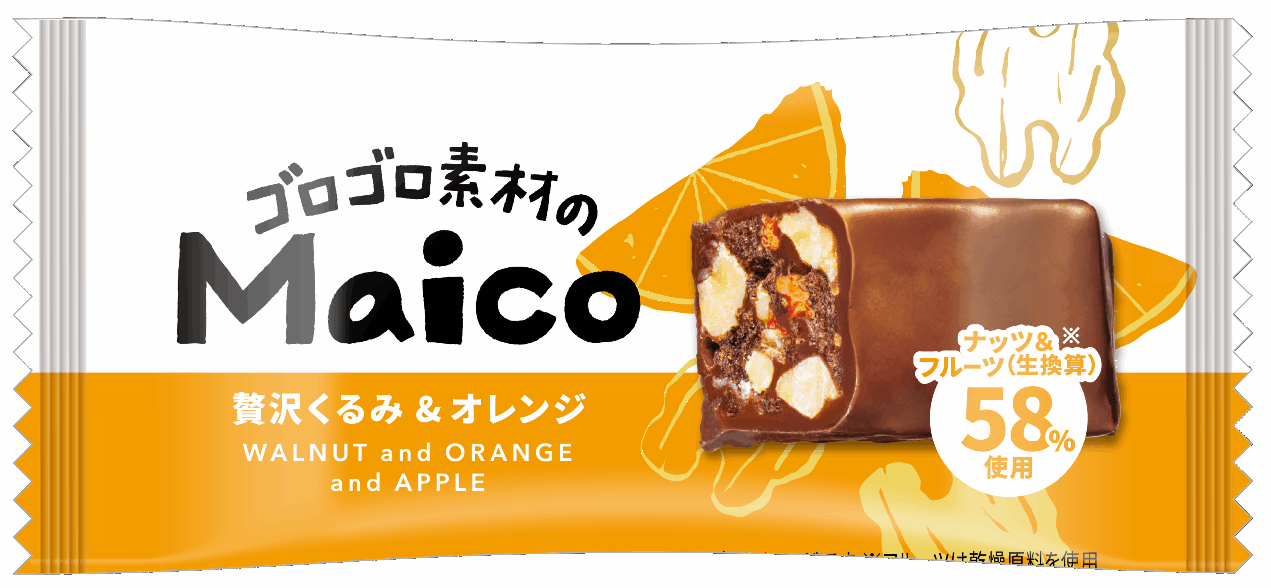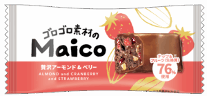 本商品は、贅沢に使用したナッツやフルーツなどの素材を楽しむことができ、食べやすいちょこっとサイズを目指 して開発いたしました。素材のゴロゴロ感にもこだわり、「Maico アーモンド&ベリー」は”生換算 76%”、 「Maico くるみ&オレンジ」は“生換算 58%”と贅沢に素材を使用し、食べ応えや満足感もしっかり感じられます。またナッツやフルーツなどの素材の味わいと、セミビターなチョコレートがマッチし、大人の方も楽しんでいただ ける上品な味わいに仕上げています。贅沢なゴロゴロ素材と、食べやすいちょこっとサイズは仕事中や家事中などの毎日の小腹満たしにぴったりです。 ぜひ有楽製菓の新商品「Maico」をお客様の「マイチョコレート」としてお楽しみください。