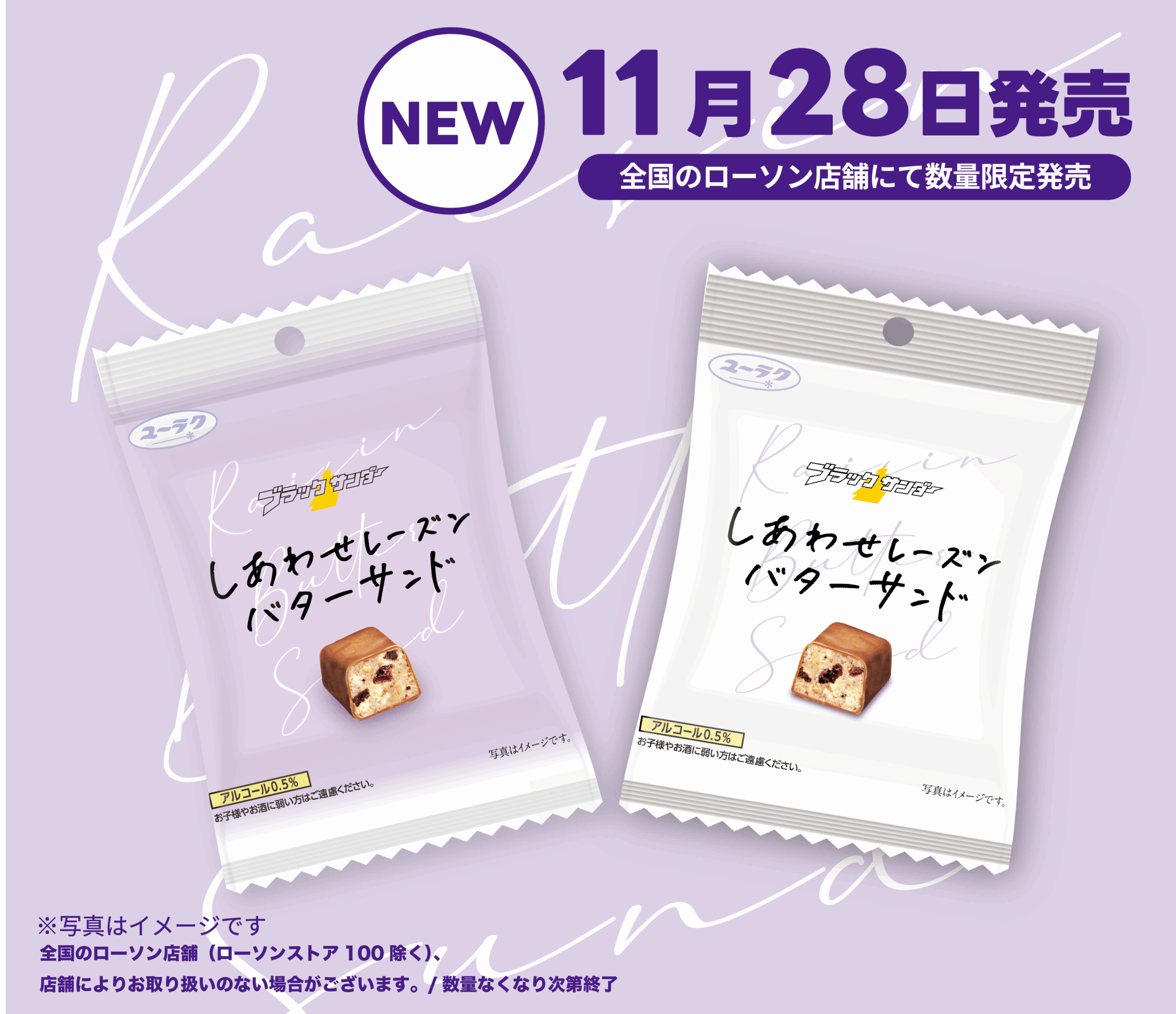 有楽製菓株式会社(本社:東京都小平市、代表取締役社長 河合辰信)は、ブラックサンダーシリーズから「ブラックサンダーひとくちサイズ しあわせレーズンバターサンド」を、20231128()より全国のローソン店舗にて数量限定で発売(※)いたします。