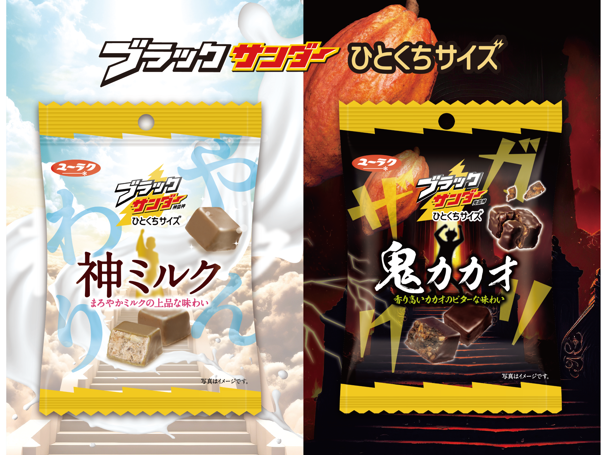有楽製菓株式会社(本社:東京都小平市、代表取締役社長 河合辰信)は、ブラックサンダーシリーズから「ブラックサンダーひとくちサイズ 神ミルク」「ブラックサンダーひとくちサイズ 鬼カカオ」を、2024年1月2日(火)より順次、全国のセブン-イレブンにて発売いたします。※一部店舗では取り扱いのない場合がございます。