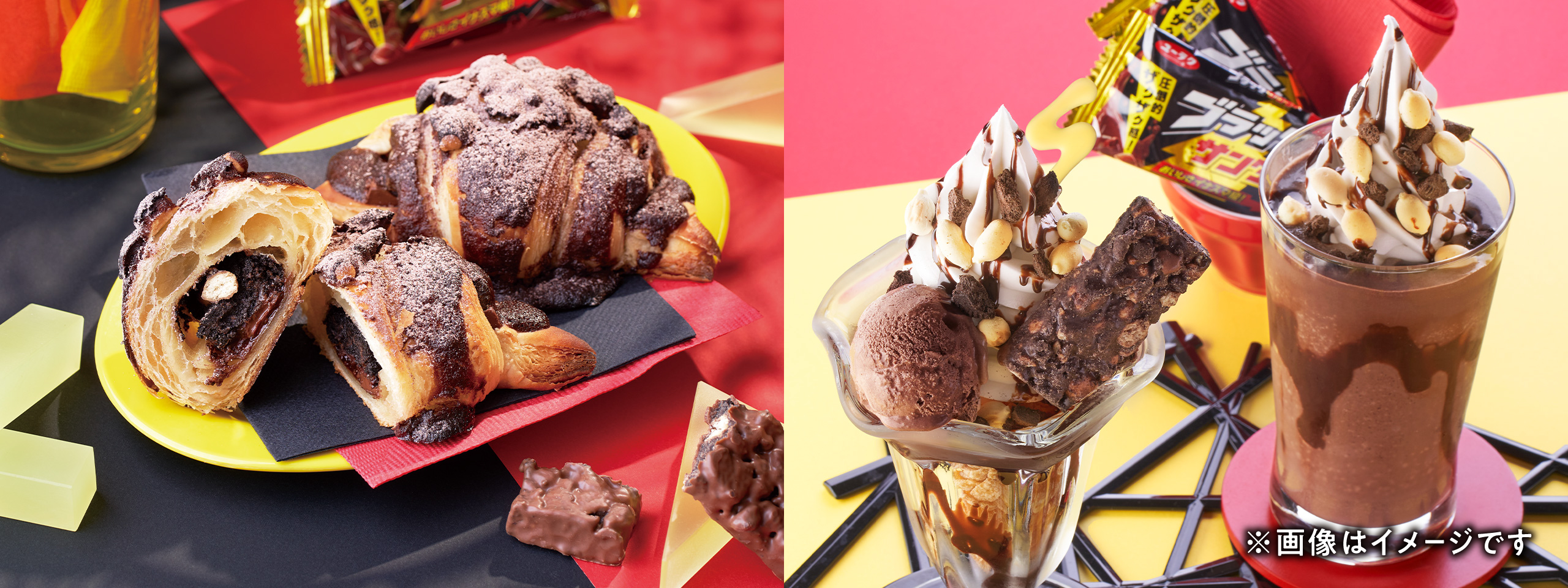 2024年9月に30周年を迎える「ブラックサンダー」は、同年3月に25周年を迎えた「サンマルクカフェ」とお互いの節目となる本年をより盛り上げていきたいという想いから今回初めてのタッグを組み、おいしさWイナズマ級なコラボレーション期間限定メニューを提供いたします。