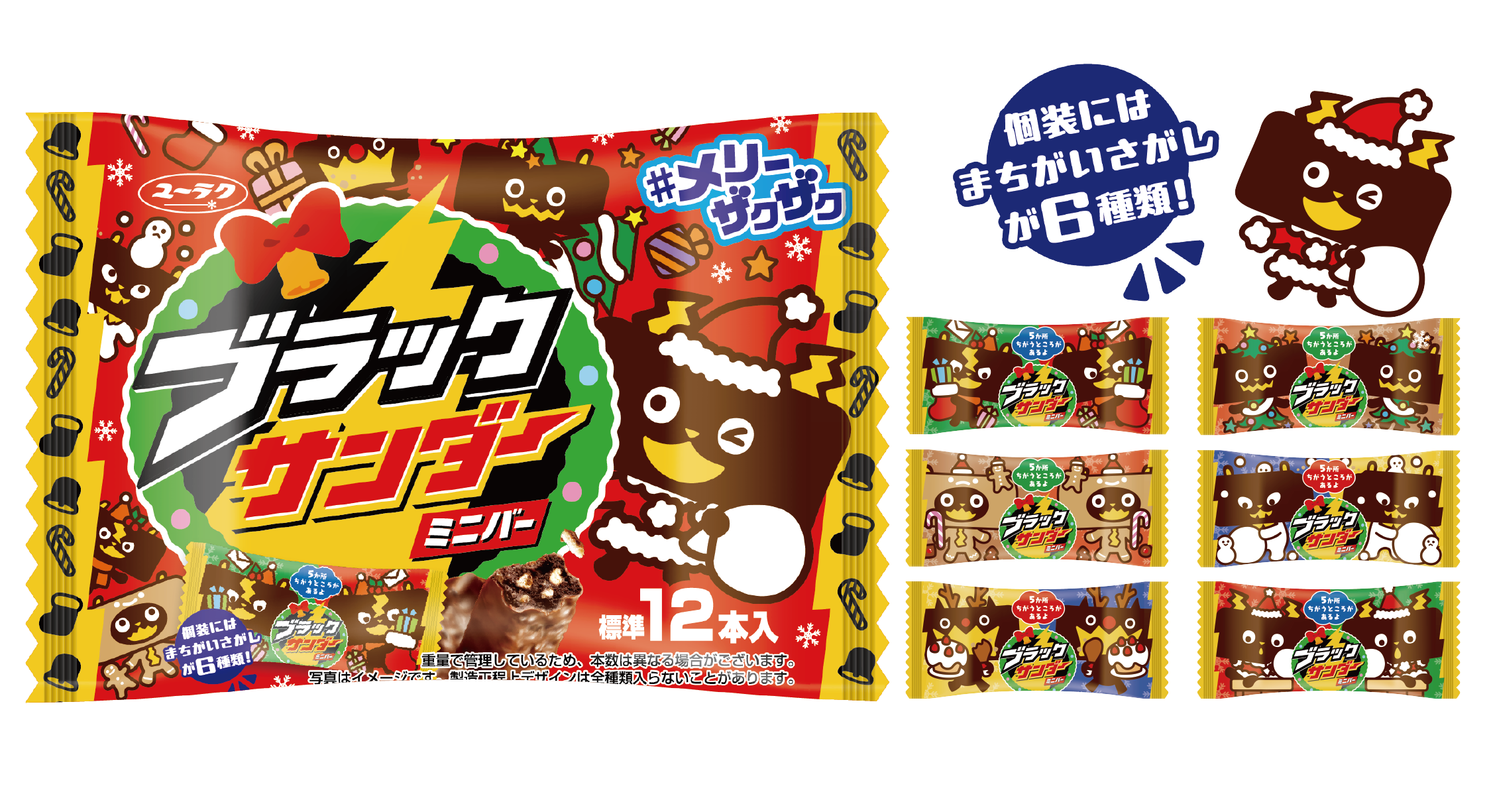 ご家族や友人とのパーティーに最適な「ブラックサンダーミニバークリスマス」をご用意しました。まちがい探し付きで、盛り上がること間違いなし!楽しい時間をお届けします。