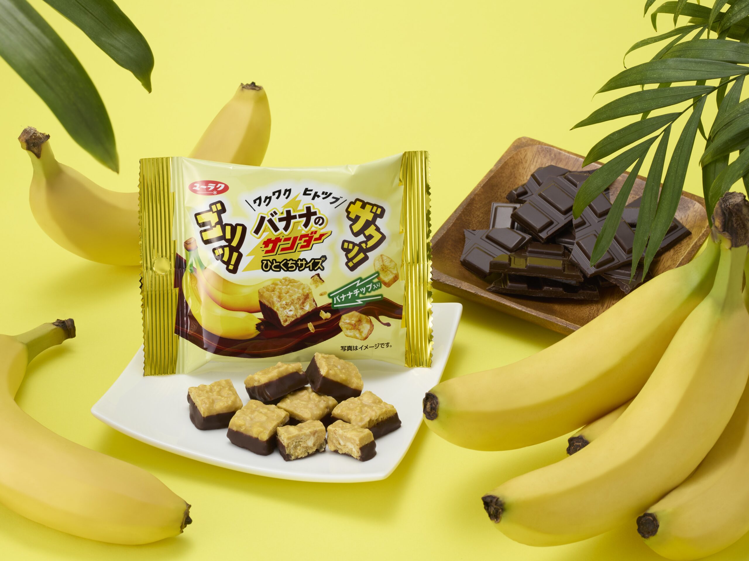 “バナナ×チョコ”間違いないおいしさ! ゴリッ!ザクッ!な食べ応えがヤミツキなヒトツブ 『バナナのサンダーひとくちサイズ』登場!